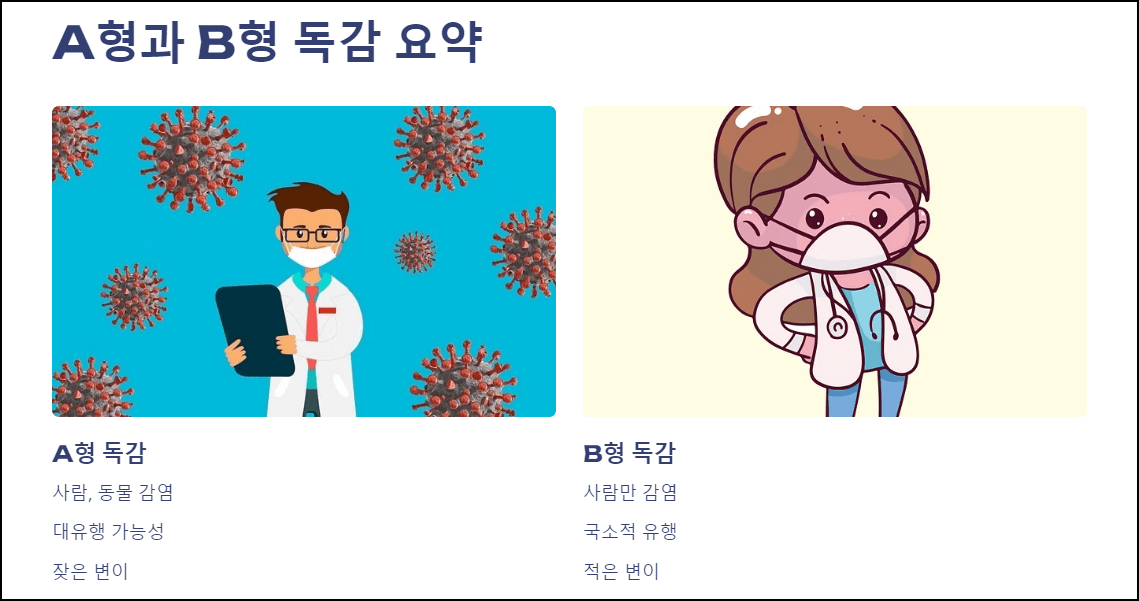 아래 표를 통해 A형과 B형 독감의 주요 차이를 확인해 보세요.