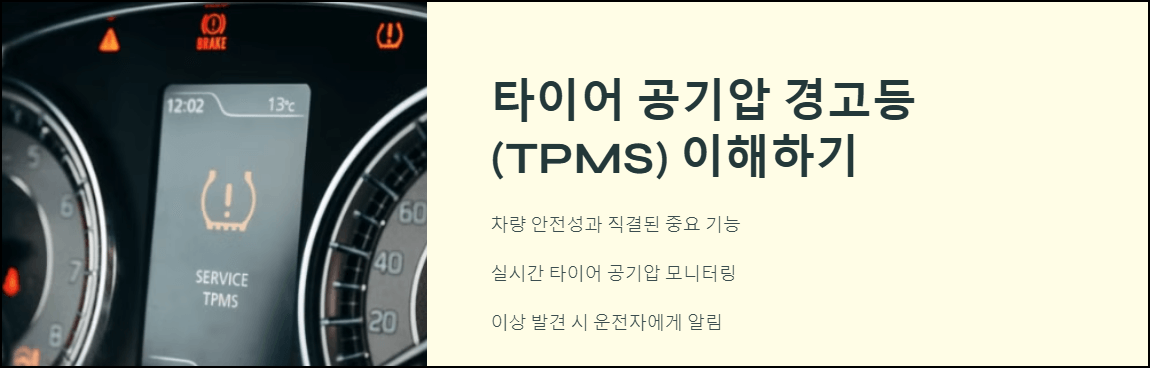 타이어 공기압 경고등(TPMS, Tire Pressure Monitoring System)은 차량의 안전성과 직결되는 중요한 기능입니다. 이 경고등은 타이어 공기압 상태를 실시간으로 모니터링하고, 이상이 발견되면 운전자에게 알림을 제공합니다.