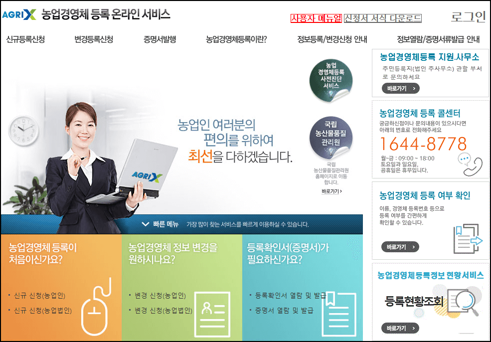 - 농업경영체등록 온라인 서비스(바로가기) 접속