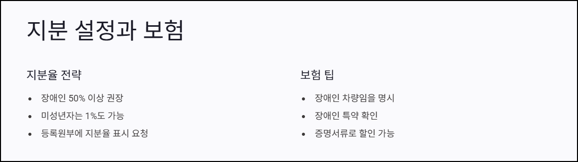 - 미성년 장애인 자녀일 경우 1%만 등록하고 나머지 지분은 부모가 소유하는 것도 가능