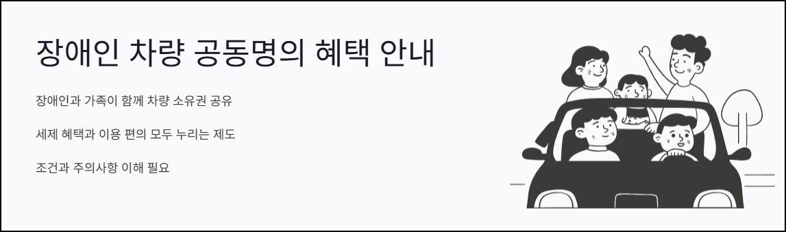 장애인이 가족과 함께 차량 소유권을 공유함으로써 실제 이용 편의와 세금 혜택을 모두 누리는 제도를 말합니다.