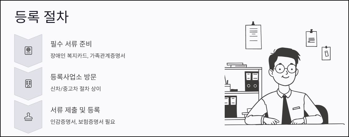 가족 중 장애인이 있고 차량 구입 또는 등록을 고민 중이라면, 공동명의 제도를 적극 활용하되 세금과 보험, 지분율까지 꼼꼼히 살피는 것이 현명한 선택입니다.